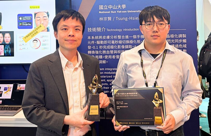 居家進行醫美等級皮膚檢測不是夢!國立中山大學光電工程學系講座教授兼研發長林宗賢,率研究團隊將尖端液晶極化技術整合成手機殼與App,成功開發全球首款「行動式極化光膚質檢測系統」。民眾只需將手機裝入專用外殼、一鍵拍攝,即可0.1秒取得微血管、棕斑、痘痘與細紋等專業級膚質指標。這項將「液晶光電」轉化為日常保養科技的創新技術,榮獲國科會「2025臺灣創新技術博覽會-未來科技獎」肯定。